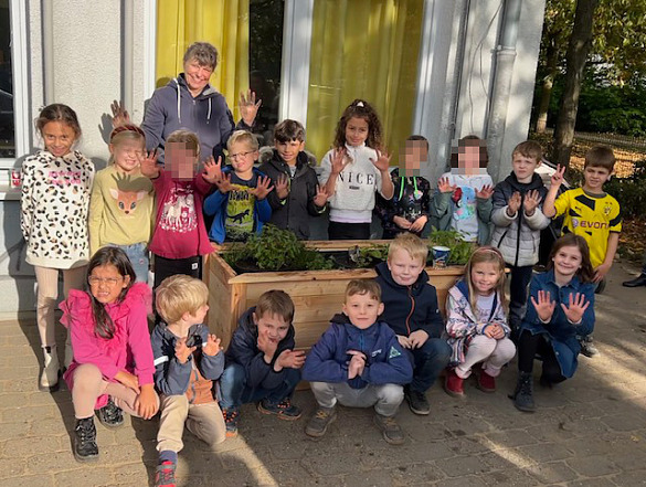 Die Klassen 1b und 2b haben am vergangenen Freitag zwei Hochbeete bekommen. Knapp 40 Kinder freuen sich nun auf das Projekt "Gemüseanbau", welches von der Blumenfee Jutta Dreyer tatkräftig betreut und unterstützt wird. Die Hochbeete bieten ausreichend Platz für Karotte, Radieschen und Co. Für die anstehende Winterzeit wurden nun zunächst Pfefferminze, Zitronenmelisse, Oregano und einige andere Kräuter eingepflanzt. In der kommenden Woche finden auch Rucola und Blattsalat ihren Platz im Hochbeet. Für viele Kinder ist der Gemüseanbau mit sähen, pflegen und ernten eine ganz neue Erfahrung! Wir werden beobachten und erleben, wie Gemüse und Kräuter wachsen und gedeihen und freuen uns schon mit allen Beteiligten über die zu erwartende Ernte.