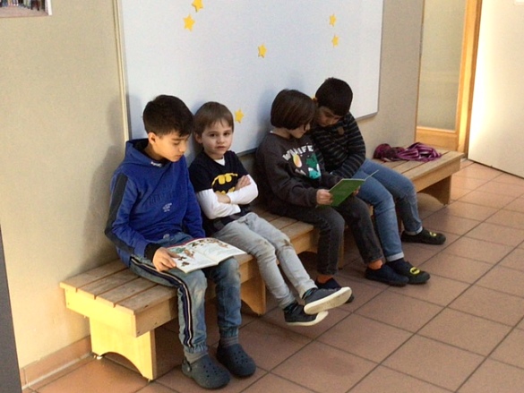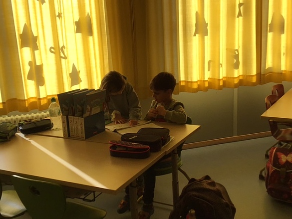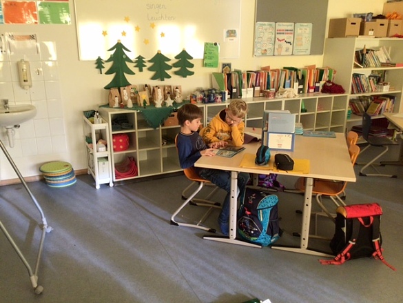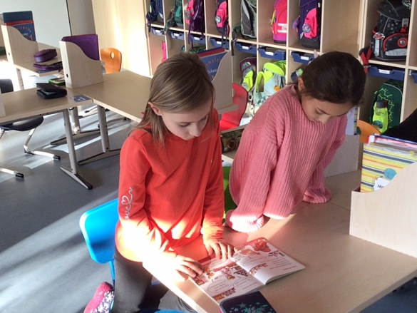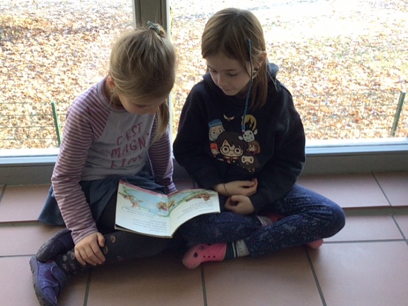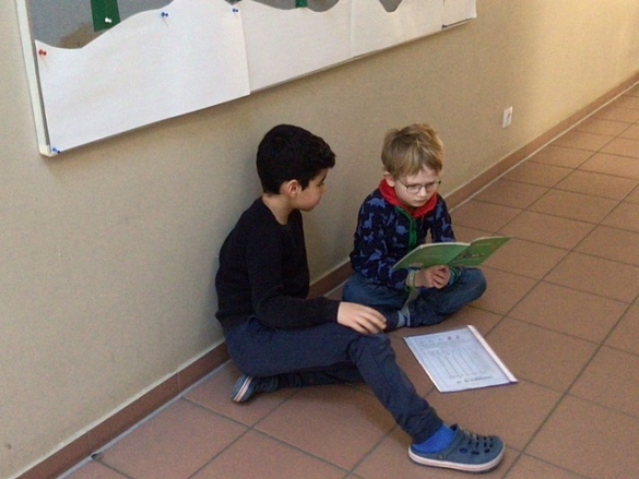 Die Klassen 1b und 2b, 1c und 2c treffen sich alle zwei Wochen zu einer gemütlichen Lesezeit im Schulhaus. In kleinen jahrgangsgemischten Gruppen dürfen sich die Kinder im Schulhaus verteilen und sich gegenseitig kleine Geschichten aus dem Lolaheft oder Erstlesebüchern vorlesen. Es ist eine tolle Atmosphäre und selbst die Lesemuffel wurden durch einen neuen Lesepartner zum Lesen angeregt. Die gemeinsamen Lesezeiten sollen regelmäßig stattfinden.